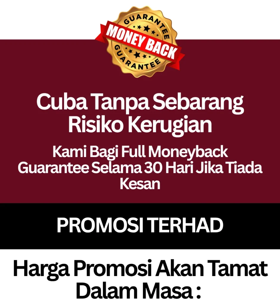 Kalau langsung tiada kesan, kami bagi 100% refund tanpa banyak soal.